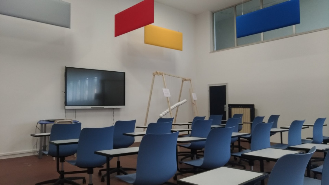 - 2 monitor interattivi modello MX da 75’’ posti ai 2 lati dell’aula per creare due diversi ambienti di apprendimento simultanei