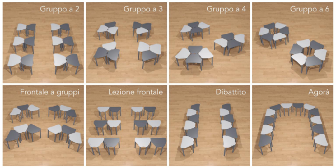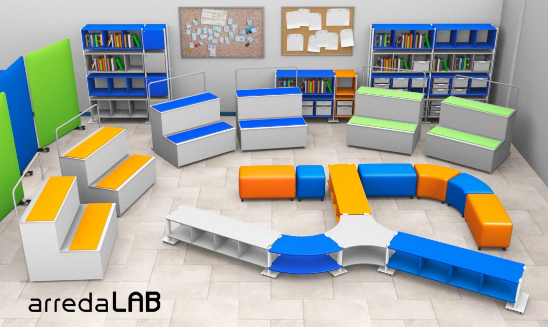 La flessibilità dell’arredo permette di realizzare ambienti che possono cambiare con dinamiche multiple. Gli spazi si possono personalizzare e adattare al contesto in modo da riflettere una identità culturale e pedagogica propria
