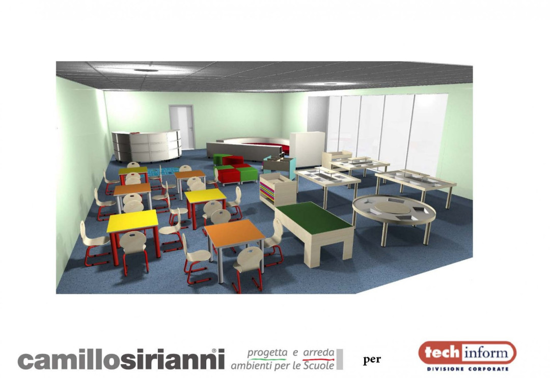 Il nostro progetto è destinato innanzitutto a rendere accoglienti gli spazi per i bambini. L'asilo diventa il luogo del primo incontro con il mondo esterno e quindi abbiamo realizzato un arredo gradevole esteticamente ma anche funzionale e confortevole per garantire occasioni di apprendimemnto anche in ambito digitale